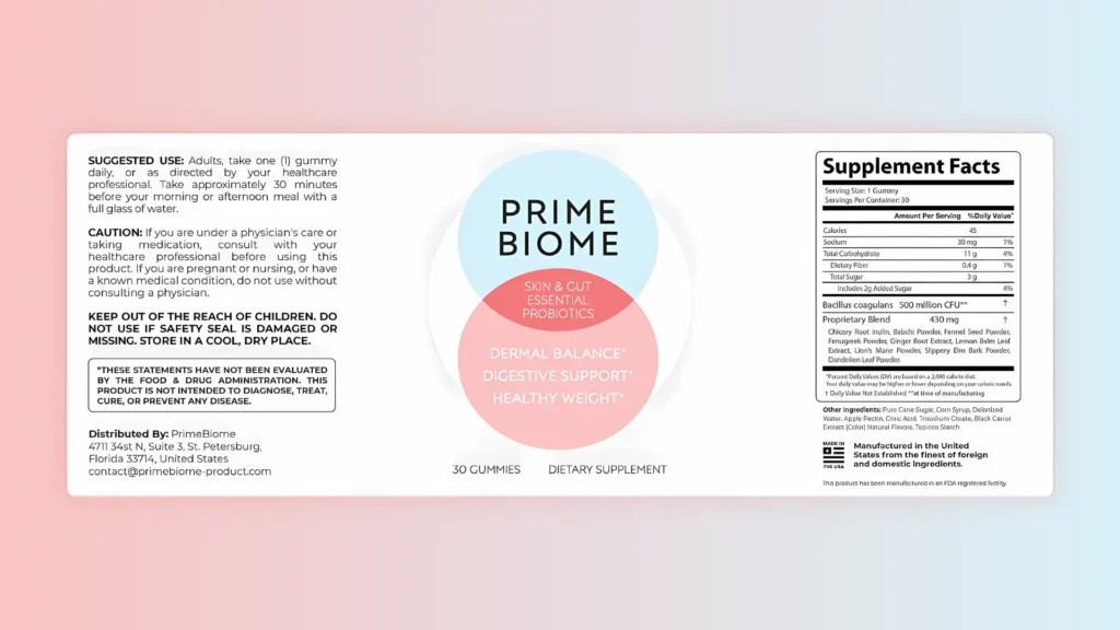 PrimeBiome comes in a pleasant-tasting gummy format, making daily use simple and convenient.